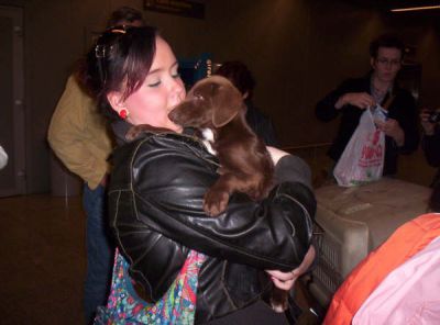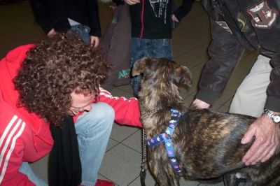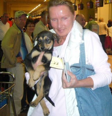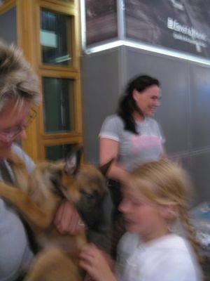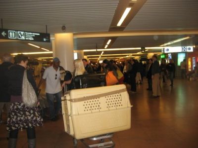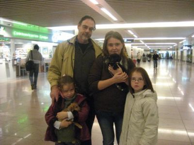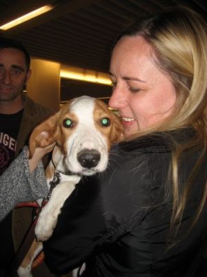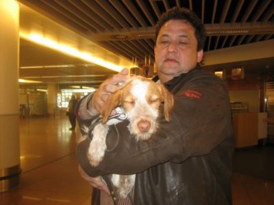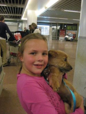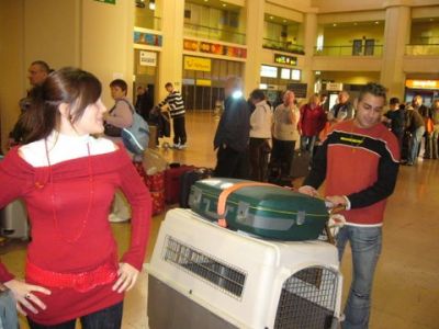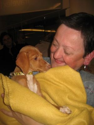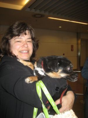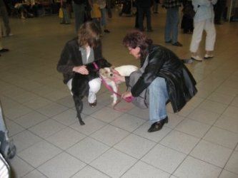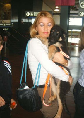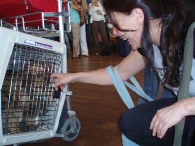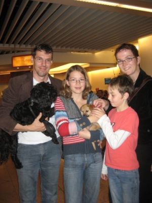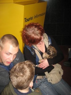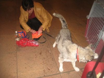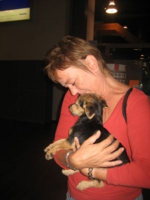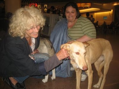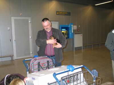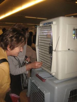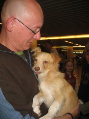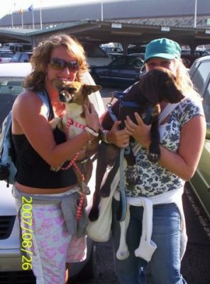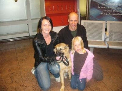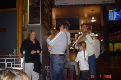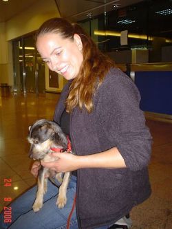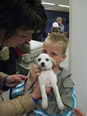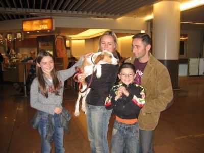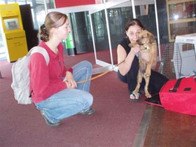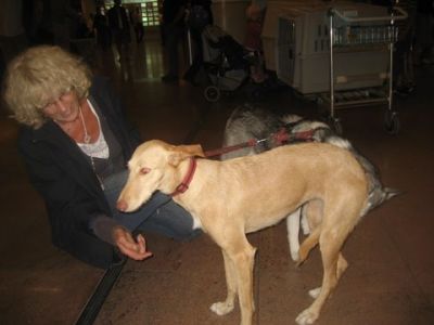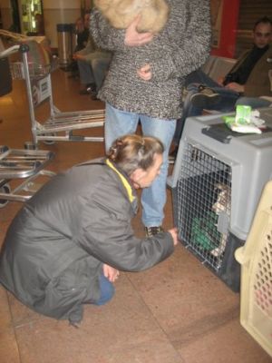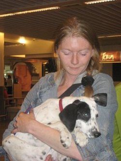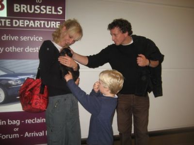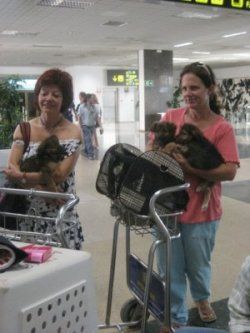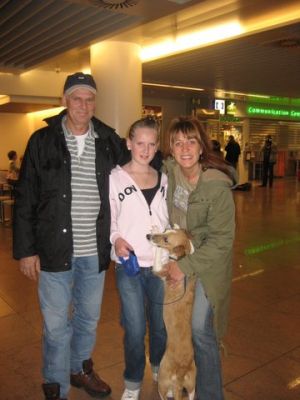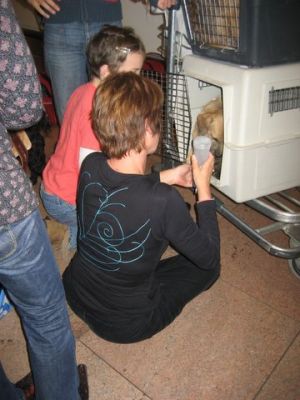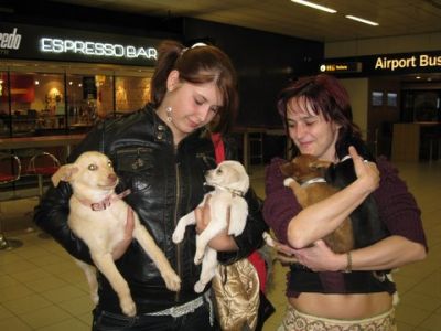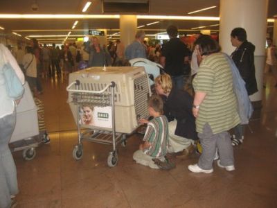| aankomst 28 juli.. Het vliegtuig had 8 uur vertraging. Er was al een aantal mensen onder weg naar Brussel. Die moesten of weer terug rijden en andere zijn weer gebleven. Maar de lieve adoptie ouders waren allemaal blij dat ze de hondjes in hun armen konden sluiten na zo dag.