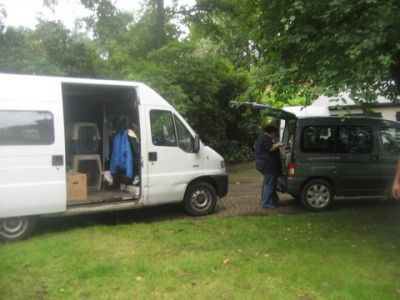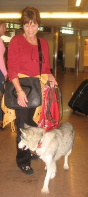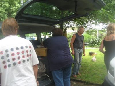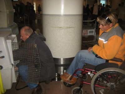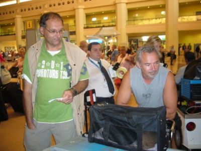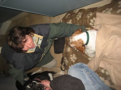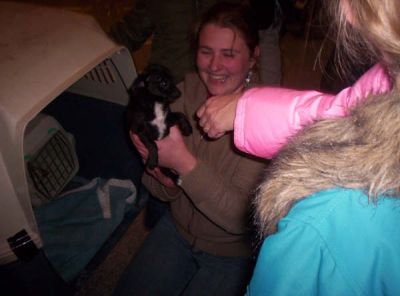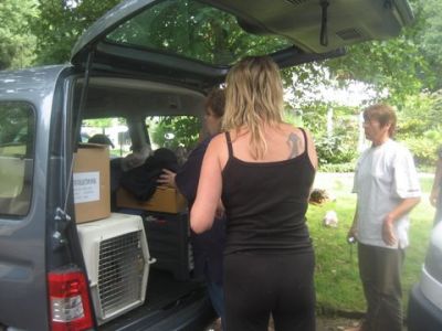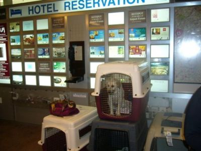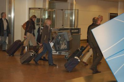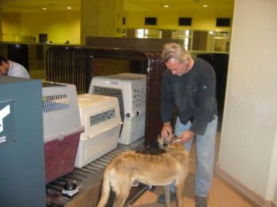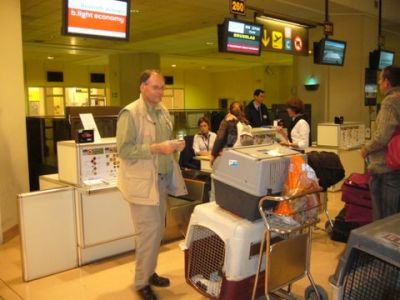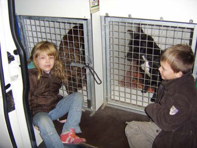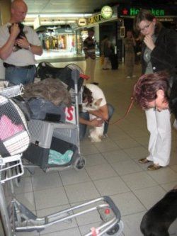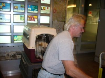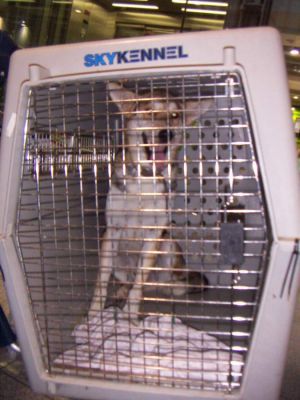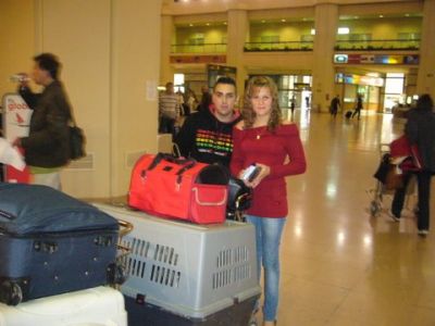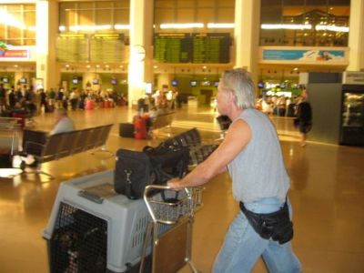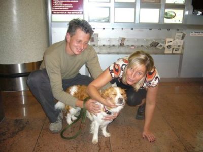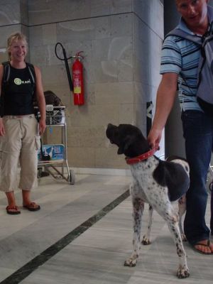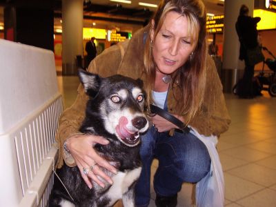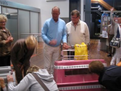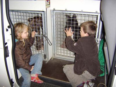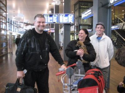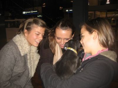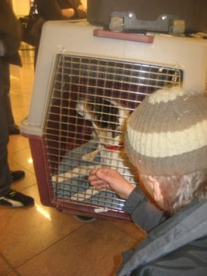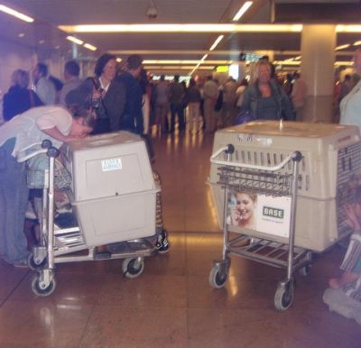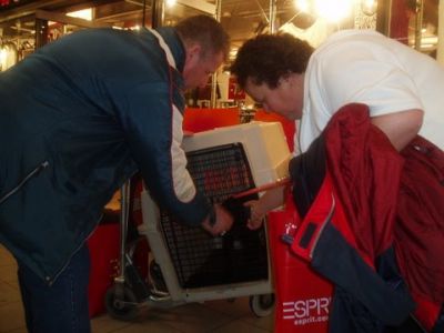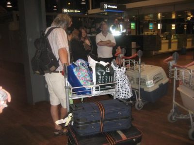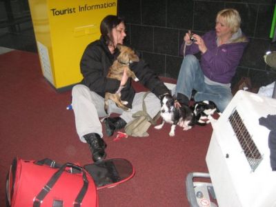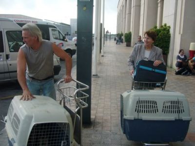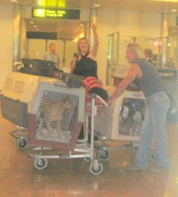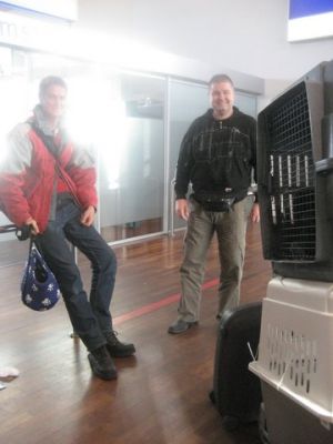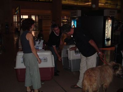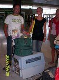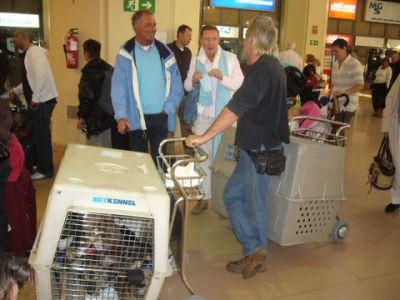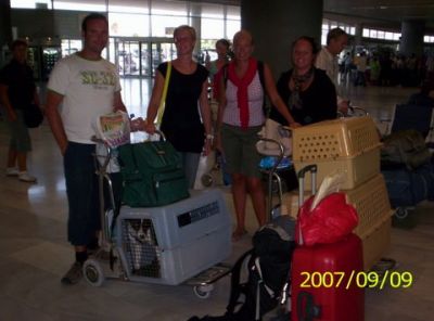 | Aankomst van christel en lou. De grote honden zijn met christel meegekomen de rest gevlogen.