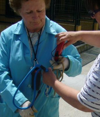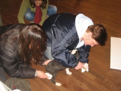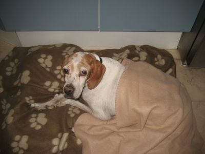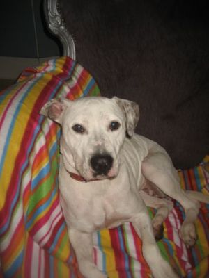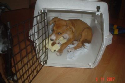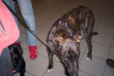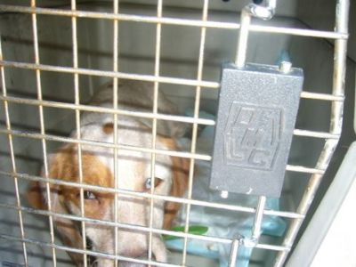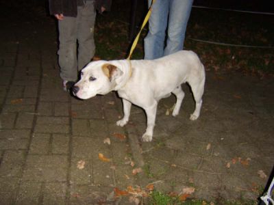| Tara is aangekomen vanavond,en ze bleek een vechthond te zijn geweest. Haar hals zit vol met wonden en haar knie is kapot. We denken kapot geslagen dat is normaal als ze verliezen. De dierenarts is gelijk langs gekomen om naar haar pootje te kijken. Morgen worden er foto,s gemaakt en zonodig geopereerd. Het is zo schatje !!
