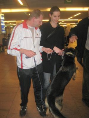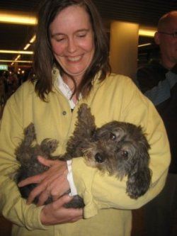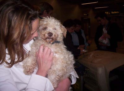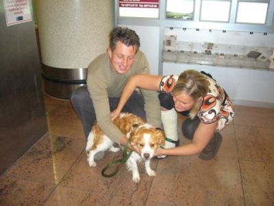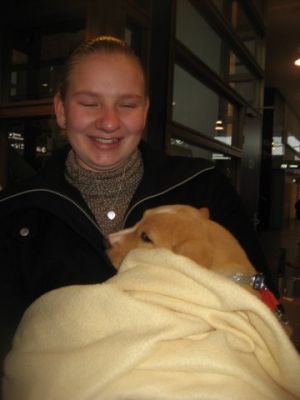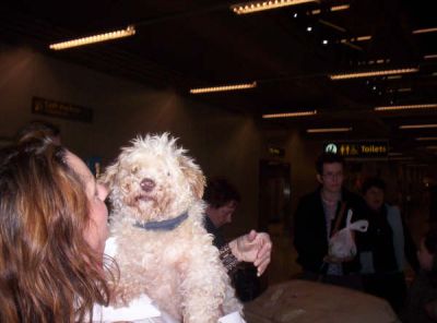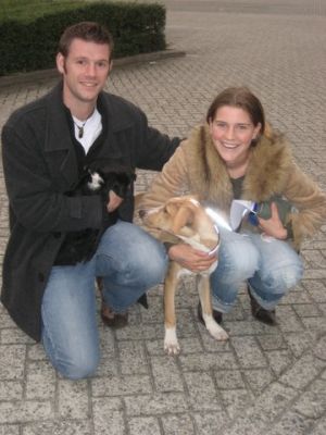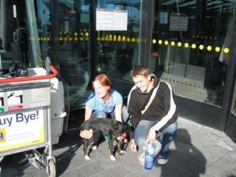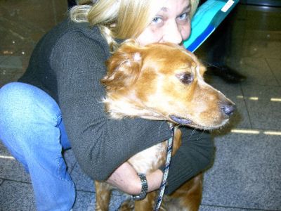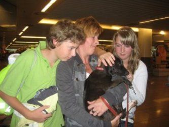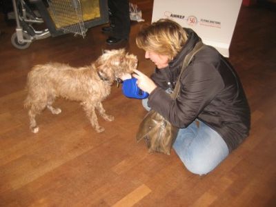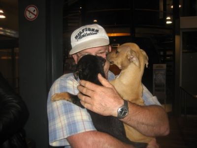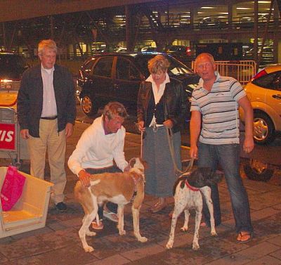 | Met 4 uur vertraging konden de baasjes dan hun honden in hun armen sluiten. Met dank aan Monique en Hugo !!! |