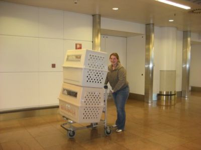 | We zijn helemaal klaar om te gaan. maandag vliegen wij naar onze nieuwe baasjes. Ineke, het vrouwtje van Joly komt ons ophalen. |