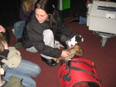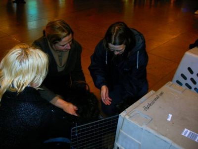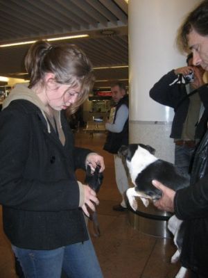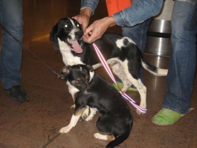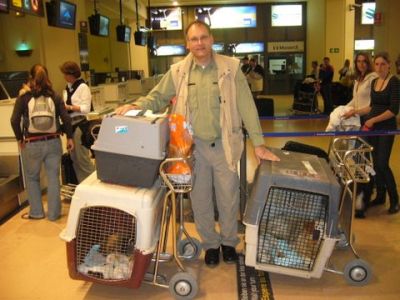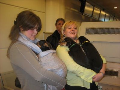 | Ollie en Charlie zijn meegevlogen naar hun nieuwe baasjes met Inneke en ze heeft ook nog een paar pups meegevlogen. mista-petra-bimbo-nigreta Bedankt Inneke voor de donatie van de vlucht en de benchjes.