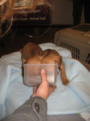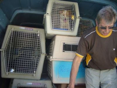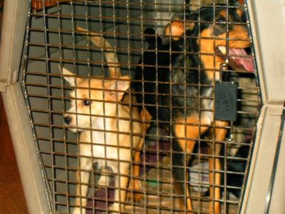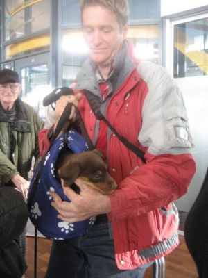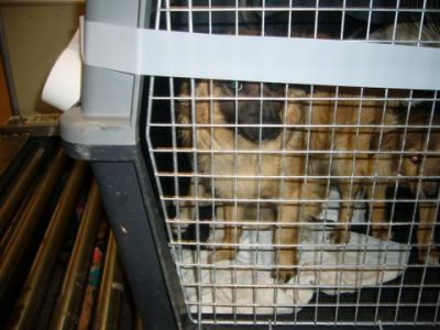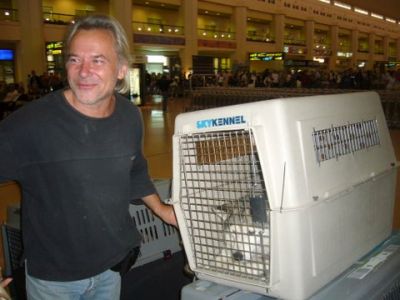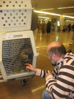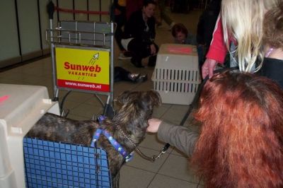 | Nico vloog 6 honden naar Rotterdam. |