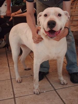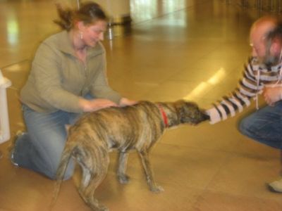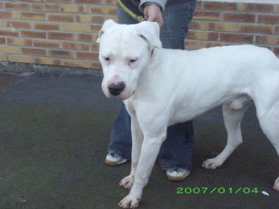 | Cartouche,een Duitse Dog pup geboren 11/2007. Hij werd \\\\\\\\`s ochtends gevonden in de wachtbox samen met een jong boxertje. Ze werden niet opgeëist.Zijn boxer vriendinnetje werd reeds geadopteerd,maar hij bleef achter. Hij is heel gestrest onder heel de situatie en depressief alleen in zijn box. Sowieso een hele grote hond in een kleine asielbox is geen situatie die lang kan blijven duren. Hij dient dringend het asiel te kunnen verlaten. Het is een zeer lieve,speelse en actieve hond.Het best niet met kleine kindjes te plaatsen vanwege zijn grote kracht