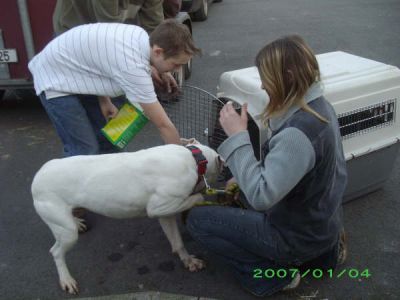 | Helaas was het voor 1 meisje Bull terriër geen happy end. Op het moment dat ze weg zouden gaan. ze liep richting uitgang . Is ze ingestort en overleden.!!! Ze had daar 6 weken zitten wachten op haar papieren en nu is ze voor de ogen van haar nieuwe baasje ROY( onze chauffeur) overleden..We zijn er allemaal heel triest van. |