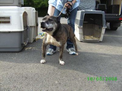 | RUSTY DE 12 JARIGE STAFFORD DIE WAS AFGEDANKT IS VORIGE WEEK IN SR club in finca Noah aangekomen.Hij is met sanna meegevlogen naar malaga en heeft de reis prima doorstaan. hij had al weer aardig wat praatjes bijaankomst op de luchthaven.